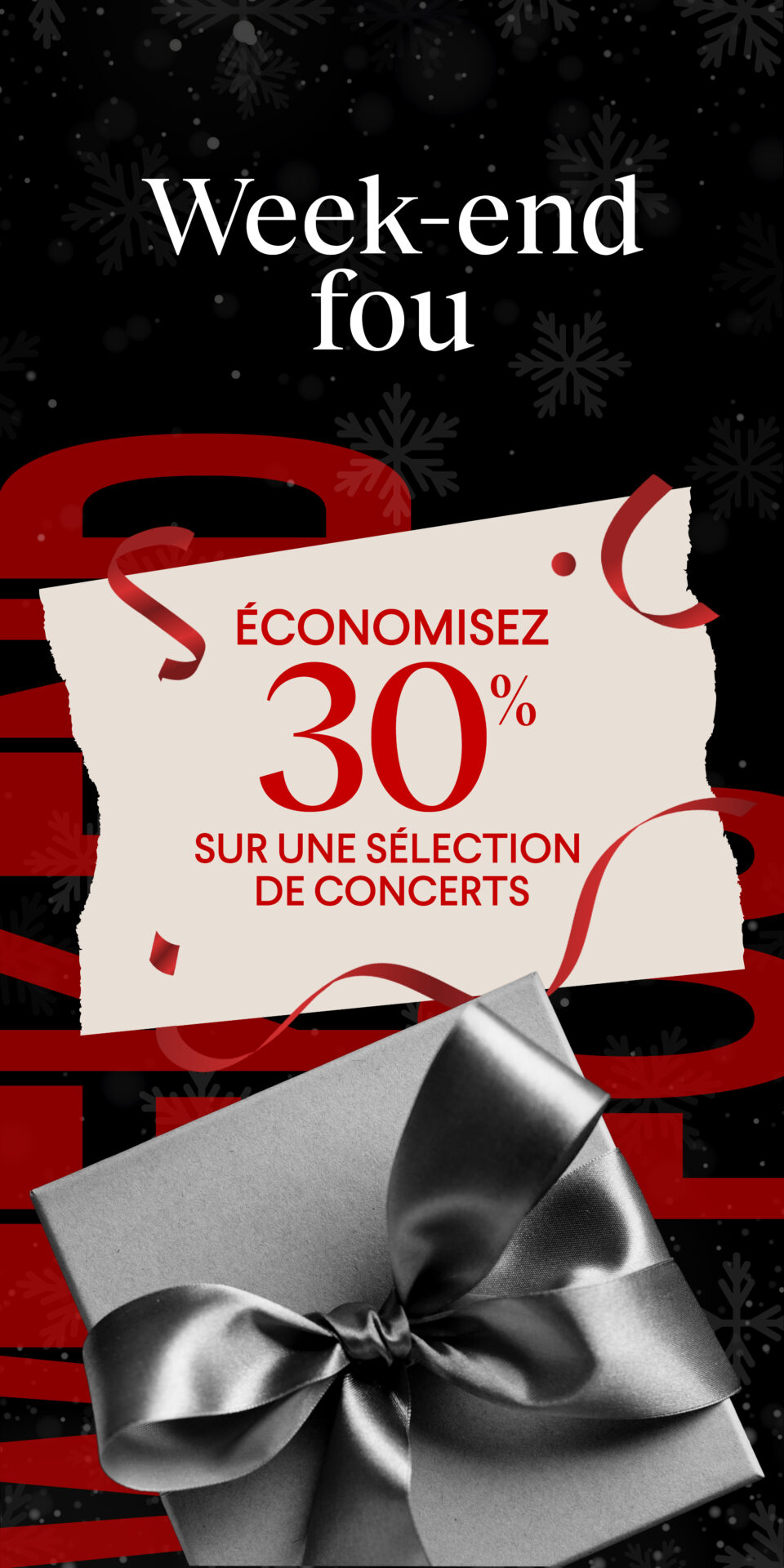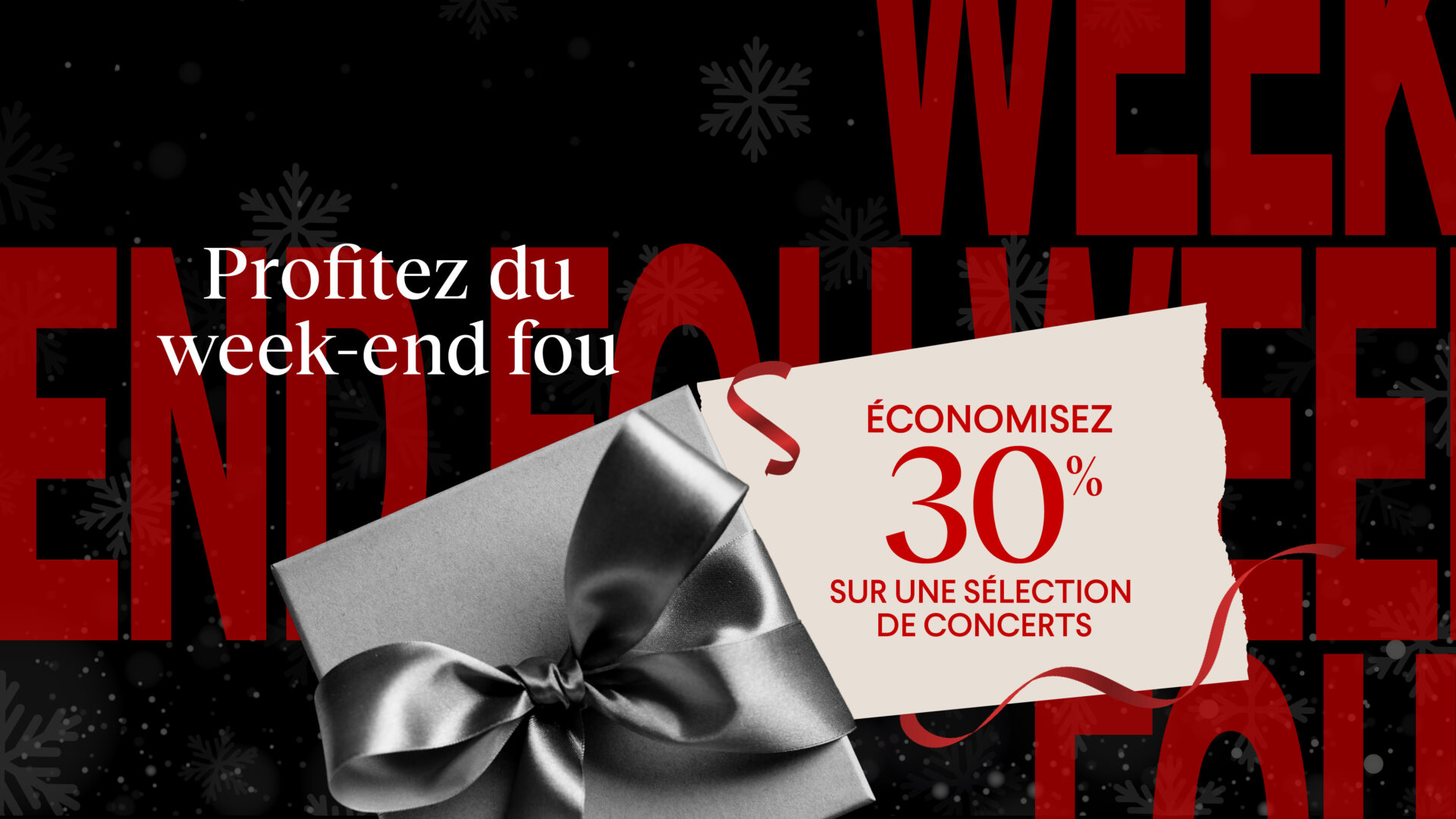Du 27 novembre au 1er décembre, obtenez un rabais exceptionnel de 30% sur des concerts sélectionnés d’ici à la fin de la saison.